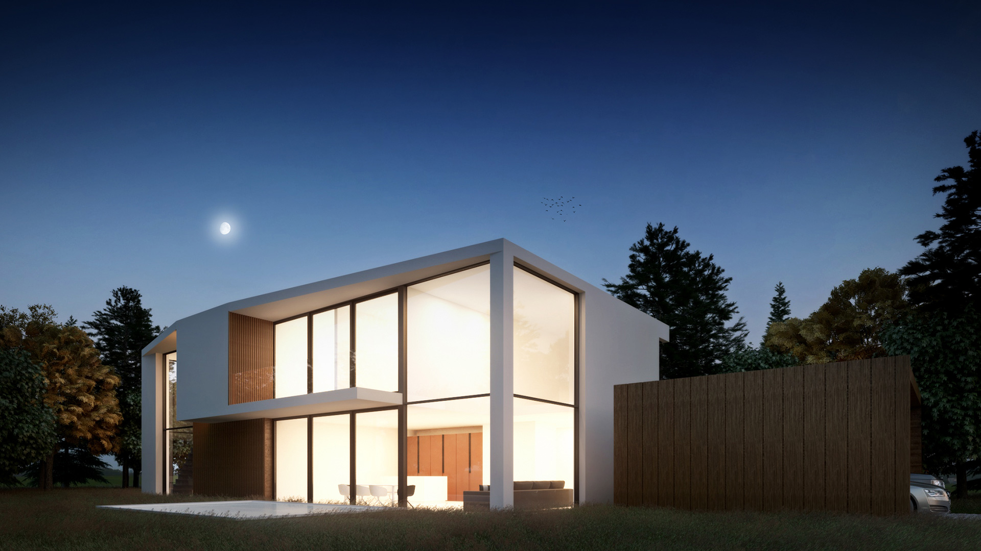 This house is 20m long and 10m wide composed of a main structure with different empty spaces, simple and contemporary.